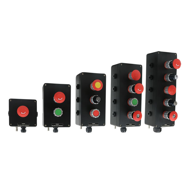 - Para botoneras con pulsador, botón seta y botón de emergencia + Bloque Ex: