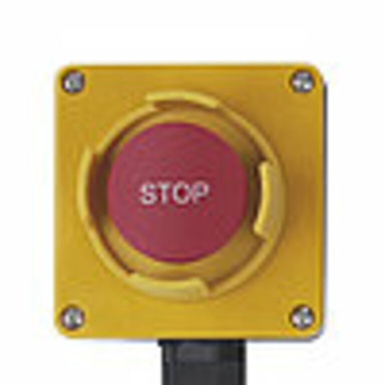 Botón de emergencia instalado en las proximidades de la máquina de tracción.