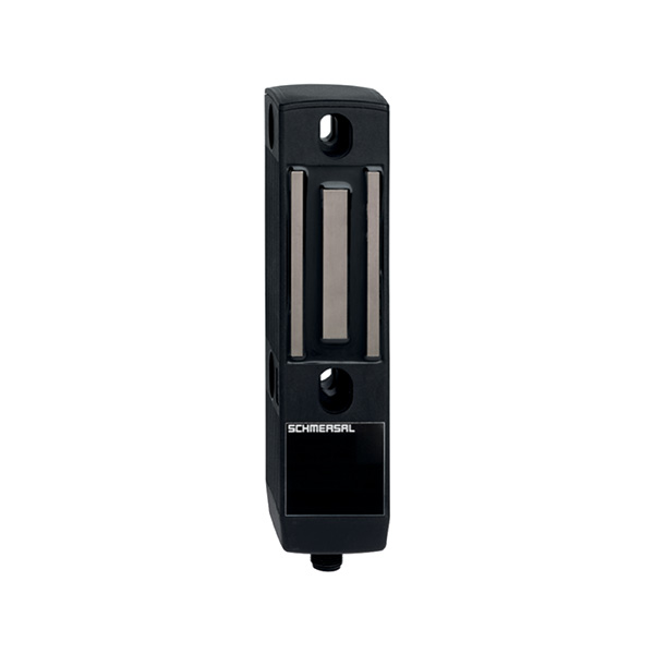 El interruptor de seguridad electrónico con enclavamiento magnético MZM 100 de Schmersal es una solución avanzada para la protección de accesos en entornos industriales. Diseñado para monitorear y bloquear puertas, tapas y resguardos móviles, impide la apertura de accesos mientras exista riesgo operacional. Su funcionamiento se basa en un sensor inductivo sin contacto físico, que detecta el cierre del dispositivo de resguardo y activa el bloqueo magnético. La fuerza de retención puede ajustarse electrónicamente entre 30 y 100 N (versión RE) o mantenerse mediante imán permanente (versión M), garantizando seguridad incluso en caso de falla de energía.